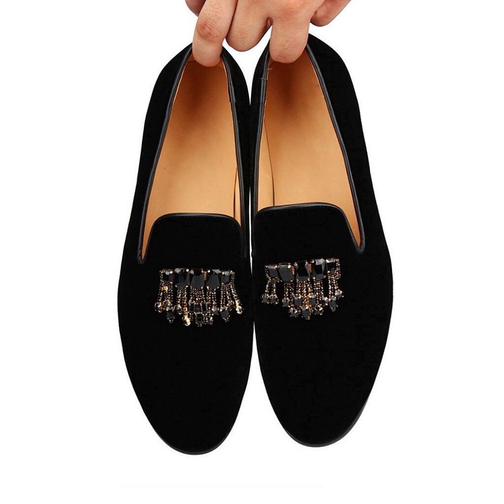 黒のスエードにビジュがついたオシャレな1足となっております。